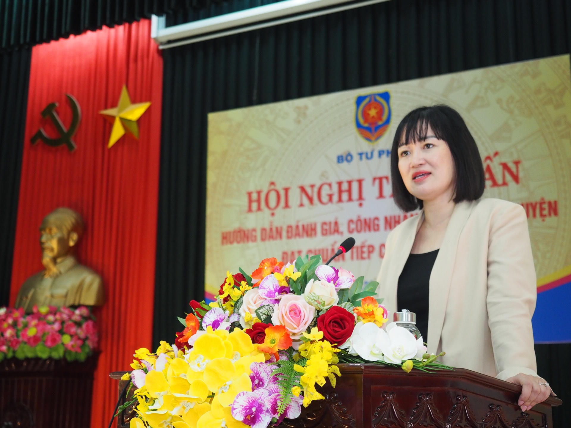 Phát biểu khai mạc Hội nghị, TS. Ngô Quỳnh Hoa - Phó Vụ trưởng Vụ Phổ biến, giáo dục pháp luật, khẳng định, việc đánh giá, công nhận huyện, xã đạt chuẩn tiếp cận pháp luật sẽ tạo cơ sở pháp lý cho việc xem xét, đánh giá mức độ hoàn thành trách nhiệm của chính quyền trong thực hiện các nhiệm vụ được được giao, nhất là những lĩnh vực trực tiếp gắn với quyền, lợi ích của người dân. Qua đó bảo đảm tính nghiêm minh, tính gương mẫu, thượng tôn pháp luật trong quản lý nhà nước, quản lý xã hội của chính quyền, nâng cao vai trò, trách nhiệm của cấp hành chính để gần dân, hiểu dân và phục vụ, đáp ứng tốt hơn nhu cầu của người dân.