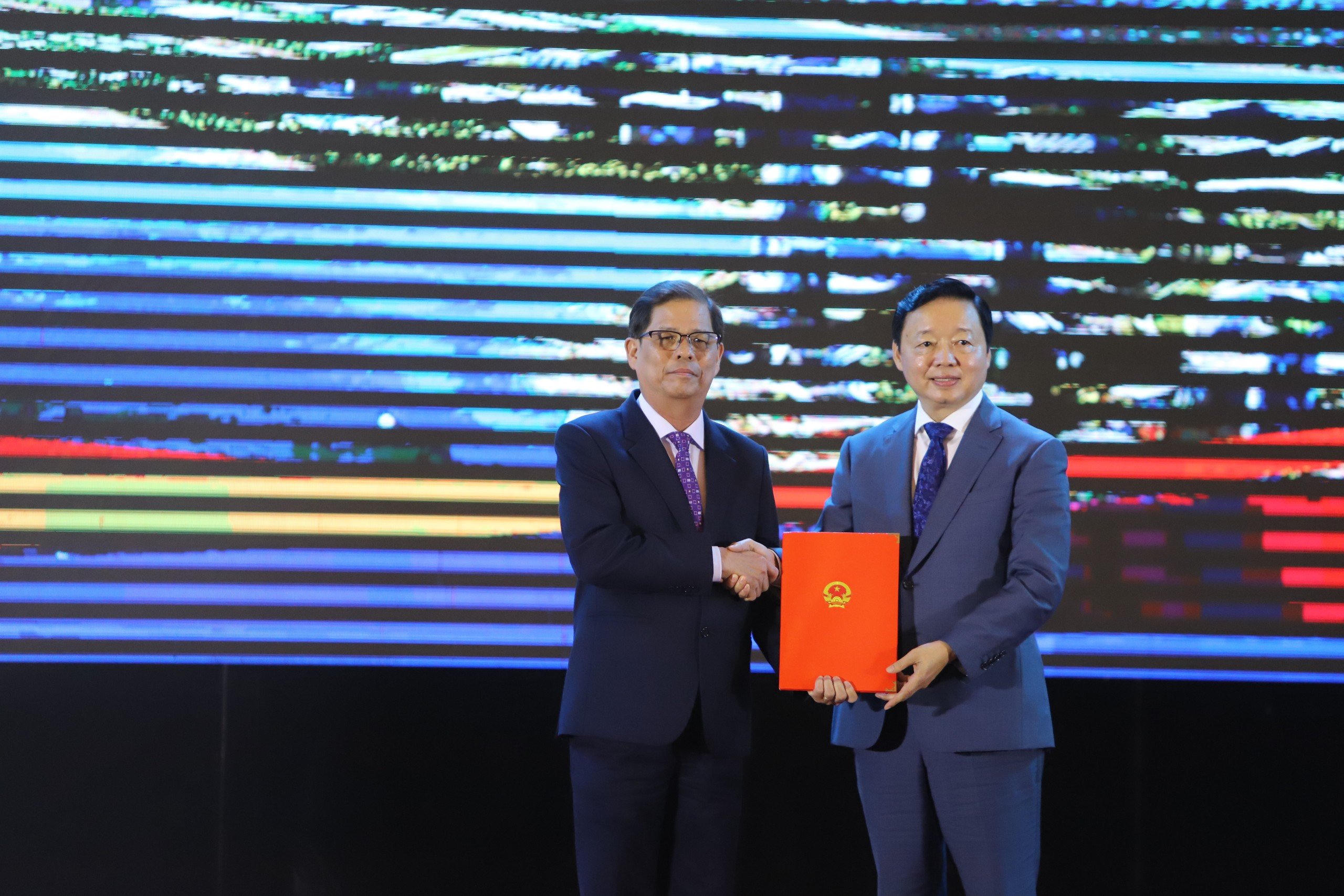 Phó Thủ tướng Trần Hồng Hà trao quyết định của Thủ tướng phê duyệt Đồ án quy hoạch chung đô thị mới Cam Lâm đến năm 2045 cho lãnh đạo tỉnh Khánh Hòa. |