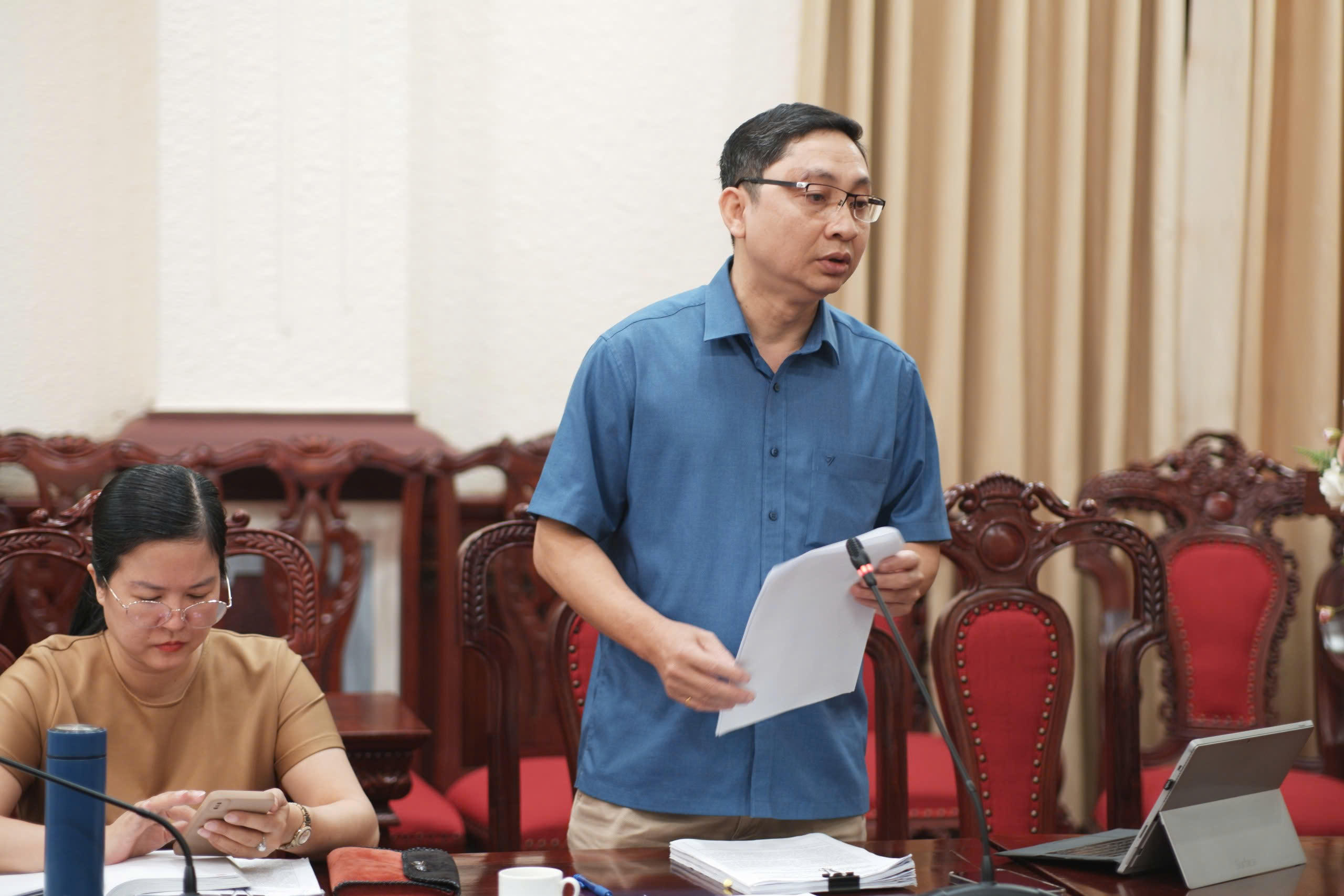 Ông Trần Anh Đức, Vụ trưởng Vụ Các vấn đề chung về xây dựng pháp luật trình bày tại buổi làm việc |