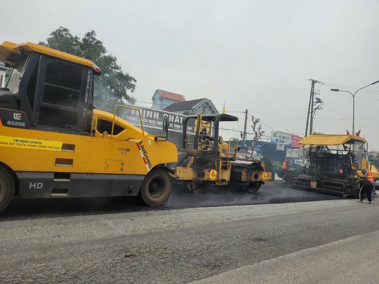 Những ngày cuối tháng 1/2024, tuyến QL1 đoạn Nam cầu Bến Thủy - Tuyến tránh TP Hà Tĩnh rầm rập đầu máy, dây chuyền thảm bê tông nhựa thi công. Ông Cao Xuân Cường, Giám đốc Chi nhánh BOT tuyến tránh Vinh thuộc Tập đoàn Cienco4 cho biết, ngay sau khi phương án trung tu dự án xây dựng tuyến tránh TP Vinh và dự án nâng cấp, mở rộng QL1A đoạn Nam cầu Bến Thủy - Tuyến tránh TP Hà Tĩnh được cấp có thẩm quyền phê duyệt, đơn vị đã nhanh chóng tổ chức các mũi thi công, tập kết vật tư, vật liệu, máy móc triển khai đồng loạt các hạng mục.