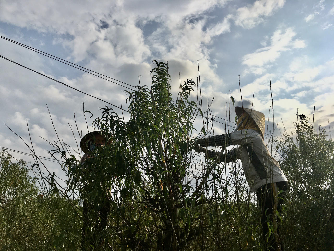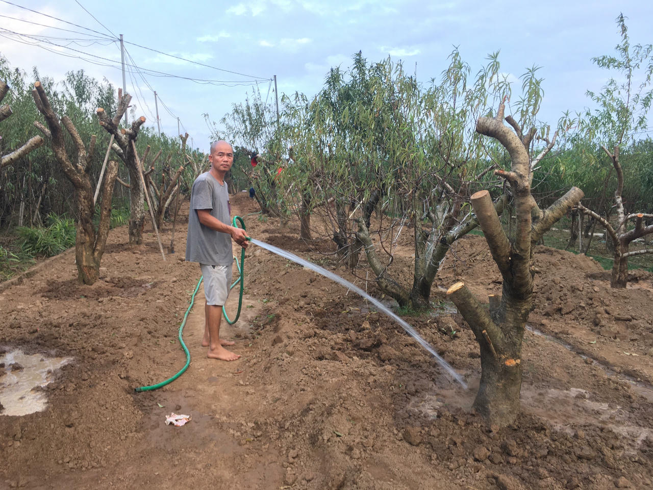 “Thời gian bắt đầu tuốt lá cần phải chăm sóc cây đào cẩn thận, ngày nào cũng phải quan sát quá trình phát triển của cây, thời tiết để có những điều chỉnh về kỹ thuật. Thời tiết luôn đóng vai trò quan trọng, chiếm 70% đến sự thành công của vụ đào, còn lại phụ thuộc vào kỹ thuật chăm sóc của người trồng cây.