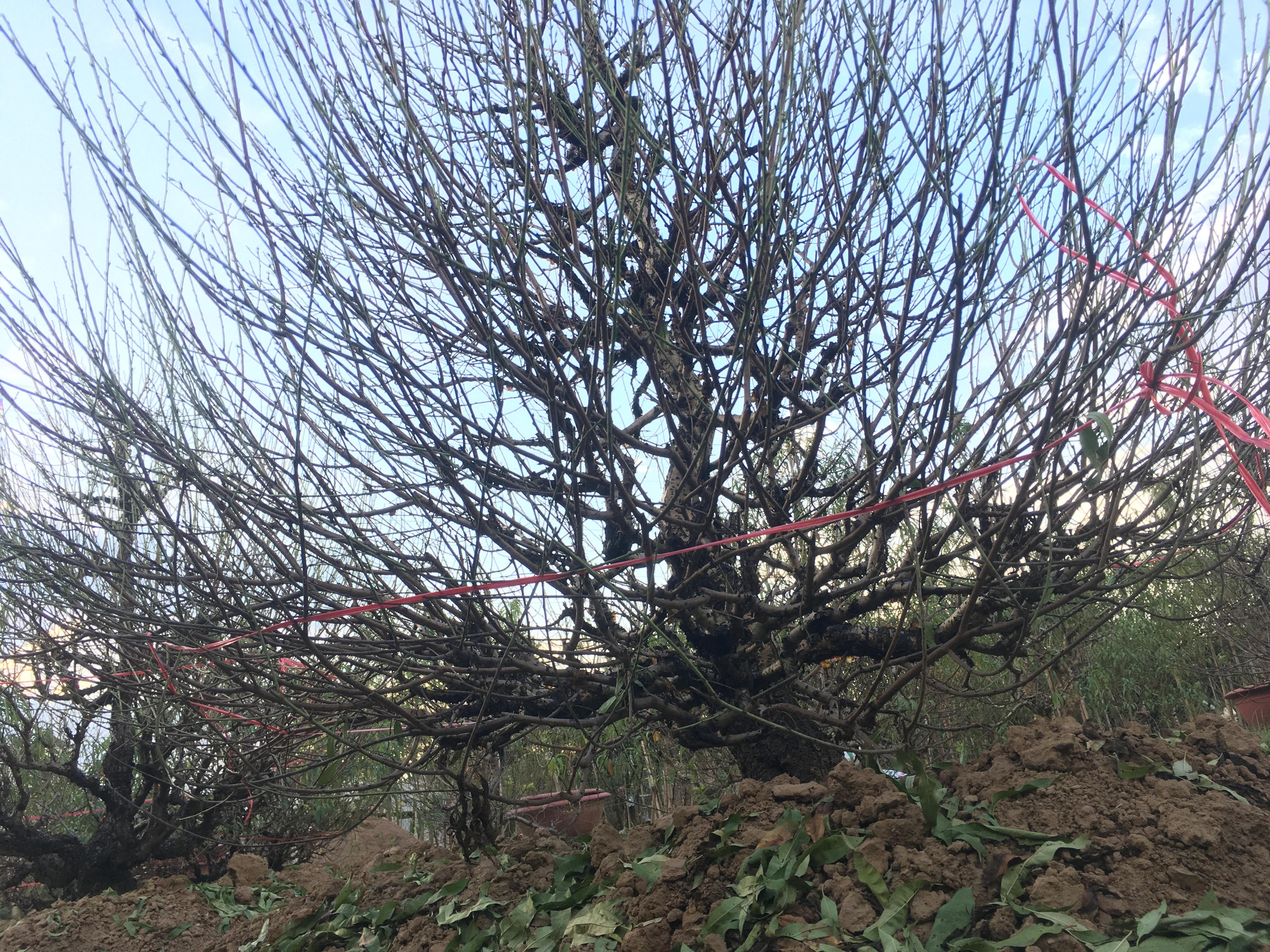 Những gốc bích đào cổ đã được xuống lá, đổ đất chuẩn bị cho hành trình "ra hoa" cho dịp Tết Nguyên đán đang tới gần. |