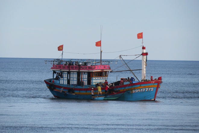 Tàu BĐ 94177 TS có công suất 460CV do gia đình anh Hoàng vay mượn mua được cách đây không lâu, đây là chuyến ra khơi thứ 3 và lần đầu tiên vào nhập cá cho thương lái ở cảng Nhật Lệ.