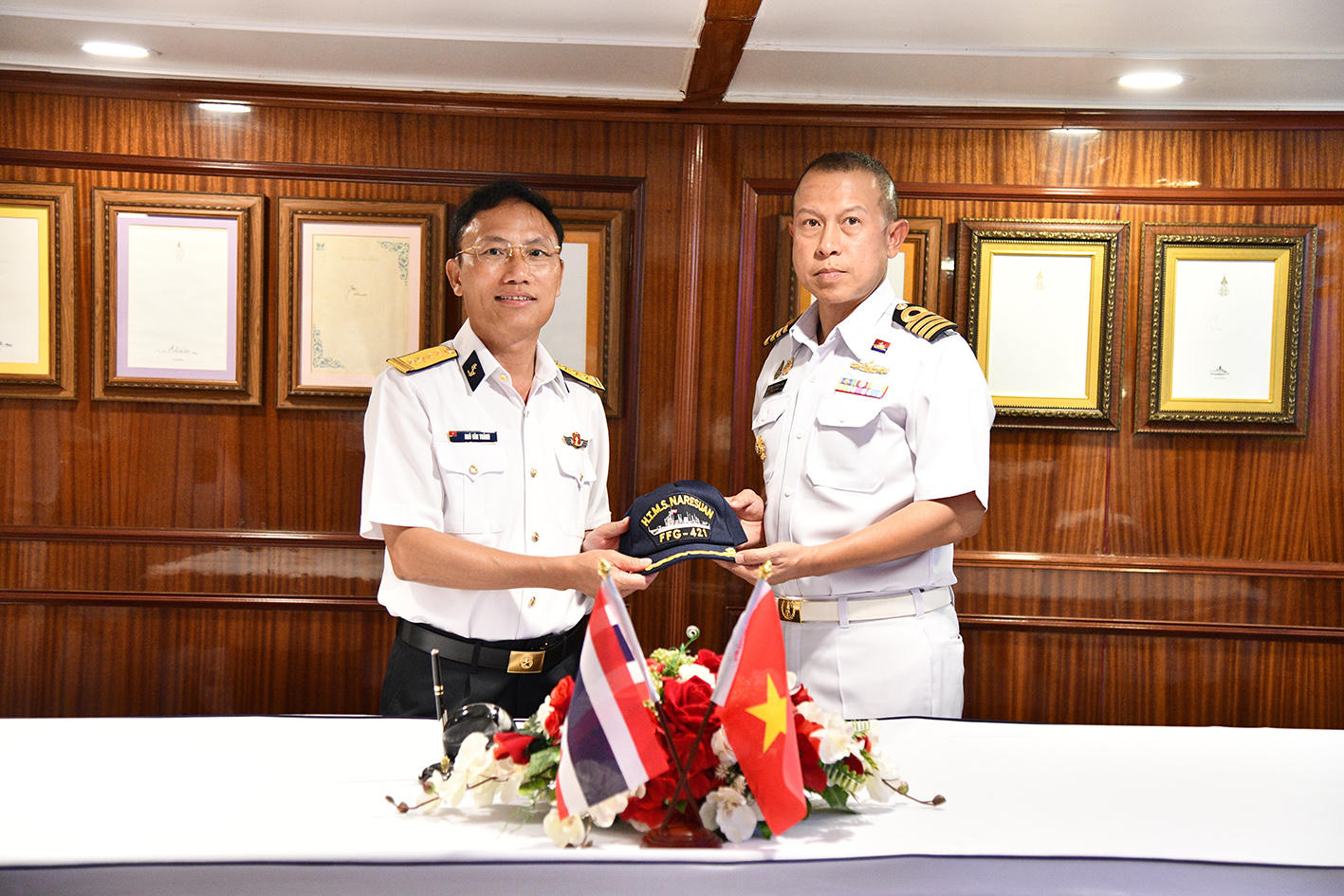 (PLVN) - Được sự đồng ý của Bộ Quốc phòng Việt Nam, ngày 2 - 6/4, Tàu H.T.M.S NARRESUAN (FFG-421) cùng đoàn công tác Vùng 1 Hải quân Hoàng gia Thái Lan do Phó Đô đốc Arpa Chapanont - Tư lệnh Vùng 1 Hải quân Hoàng gia Thái Lan làm trưởng đoàn đã đến thăm, chào xã giao Bộ Tư lệnh Vùng 5 Hải quân (TP. Phú Quốc, tỉnh Kiên Giang). Đại tá Trịnh Xuân Tùng - Tư lệnh Vùng 5 Hải quân chủ trì tiếp đoàn.