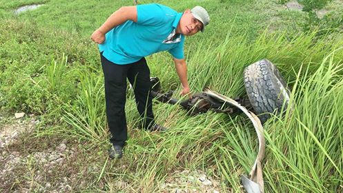 | Trục và lốp chiếc xe 7 chỗ bị văng xa sau khi bị tàu kéo lê |