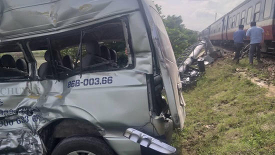 Khoảng 9h hôm nay, 31/7, xe 16 chỗ mang BKS 86B - 003.6… của nhà xe Đông Hưng trung chuyển khách từ xã Phong Phú (huyện Tuy Phong) khi băng qua đường sắt tại khu vực trên đã bị tàu SE27 chạy từ Đà Nẵng vào TP HCM tông trúng.