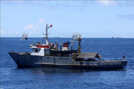Theo ghi nhận của các Kiểm ngư viên tại khu vực gần giàn khoan Hải Dương – 981 cho hay, tàu cá của Trung Quốc với khoảng 35 chiếc với sự hỗ trợ của tàu hải cảnh luôn vây ép, ngăn cản tàu cá của ngư dân ta khi đang khai thác ở ngư trường truyền thống ra xa khu vực giàn khoan từ 38- 40 hải lý. Các tàu cá của ta kiên cường bám trụ, bình tĩnh vòng tránh tiếp tục bám ngư trường khai thác thủy sản.