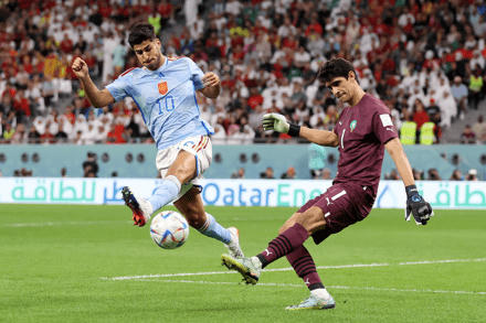 Phút 25, từ đường chuyền lỗi của thủ thành Bounou, các cầu thủ Tây Ban Nha đã có cơ hội dứt điểm rất nguy hiểm. May cho Ma-rốc là trọng tài đã căng cờ báo việt vị với Ferran Torres.