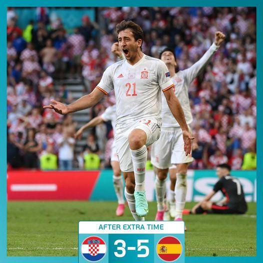 5-3, một trận đấu đầy cảm xúc. Người Tây Ban Nha đã lo lắng khi bị gỡ hòa, nhưng rồi họ bùng lên với 2 bàn thắng của Morata ở phút 100 và Oyarzabal phút 103 để nhấn chìm tham vọng của Croatia.