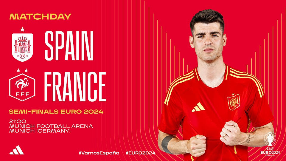 Cả Pháp và Tây Ban Nha đều không muốn kết thúc EURO 2024 ở bán kết, nên trận đấu này sẽ là cuộc đấu sống còn. Tây Ban Nha tràn lên tấn công với sức trẻ, trong khi đó Pháp bình tĩnh và thực dụng trong những phút đầu tiên trận đấu.