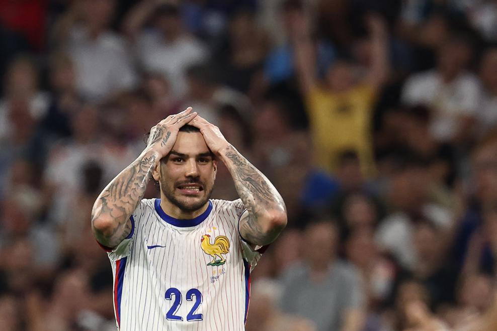 Phút 78, các cầu thủ Tây Ban Nha chủ quan và mất bóng trong cấm địa, để Theo Hernandez sút chân phải không thuận mà không bị ai kèm, nhưng bóng bay vọt xà.