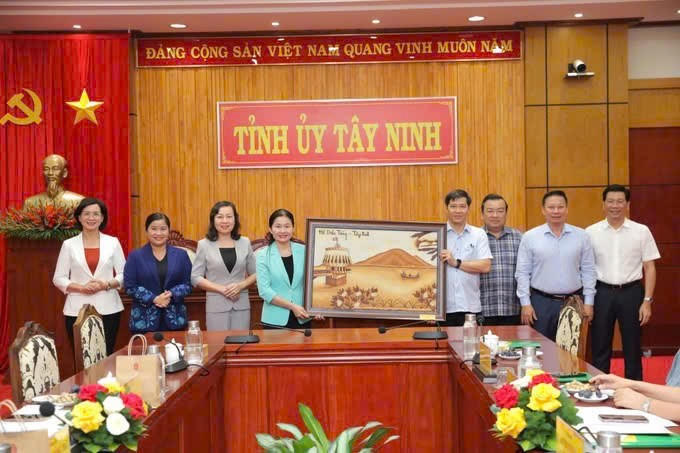 (PLVN) - Đoàn công tác của tỉnh Bình Phước do bà Tôn Ngọc Hạnh, Bí thư Tỉnh uỷ Bình Phước ngày 7/2 đến thăm và làm việc tại Tây Ninh về hợp tác phát triển kinh tế - xã hội giữa 2 tỉnh.