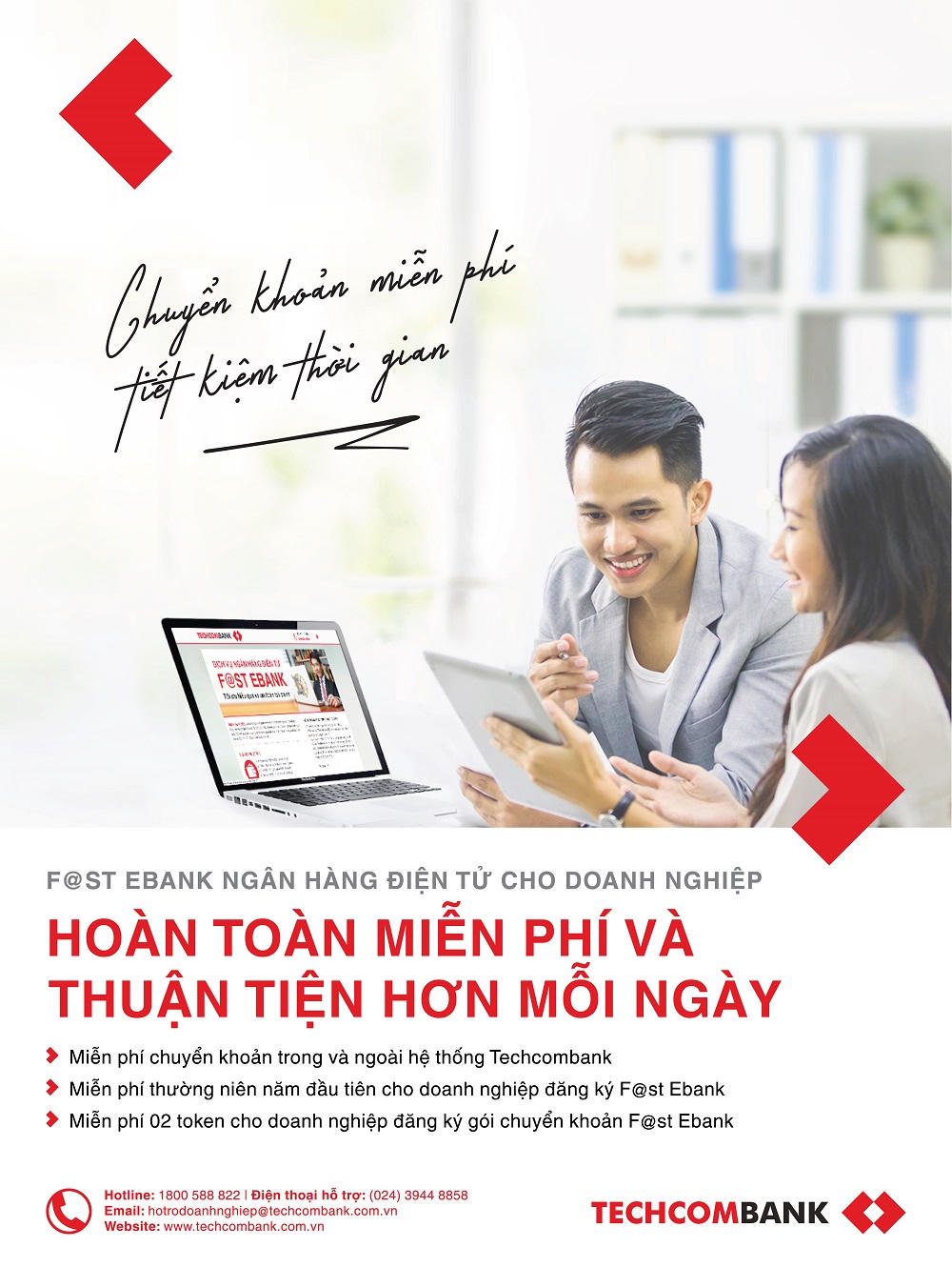 Techcombank "chơi lớn" khi miễn phí hoàn toàn mọi giao dịch trực tuyến F@st Ebank cho doanh nghiệp