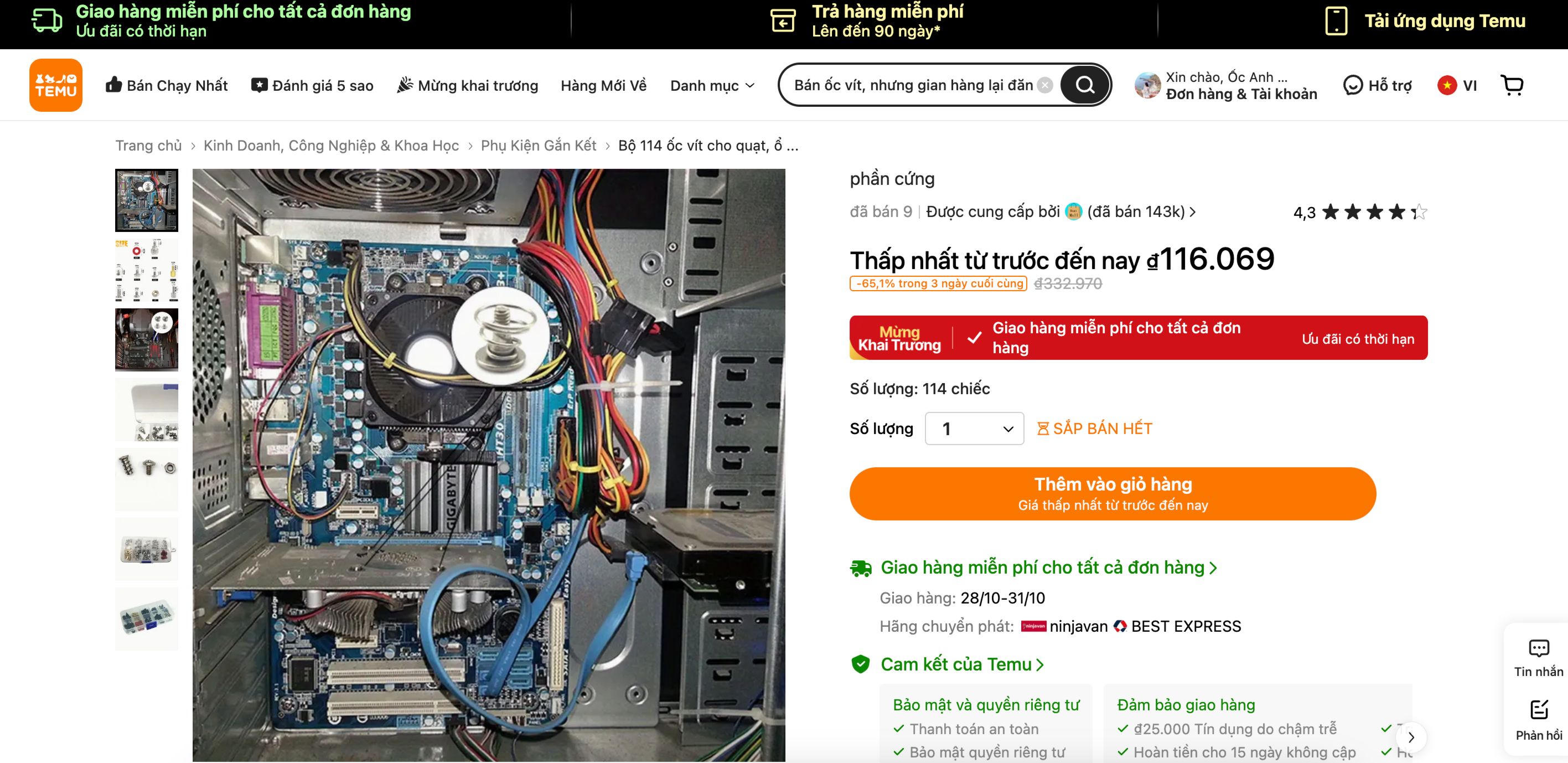 Đặc biệt, một số gian hàng trên Temu còn sử dụng chiêu trò đánh lừa khách hàng bằng cách mô tả sản phẩm không chính xác. Chẳng hạn, họ chỉ bán ốc vít, nhưng hình ảnh mô tả lại là toàn bộ phần main máy tính khiến người mua lầm tưởng mình đang mua cả sản phẩm với giá rẻ.