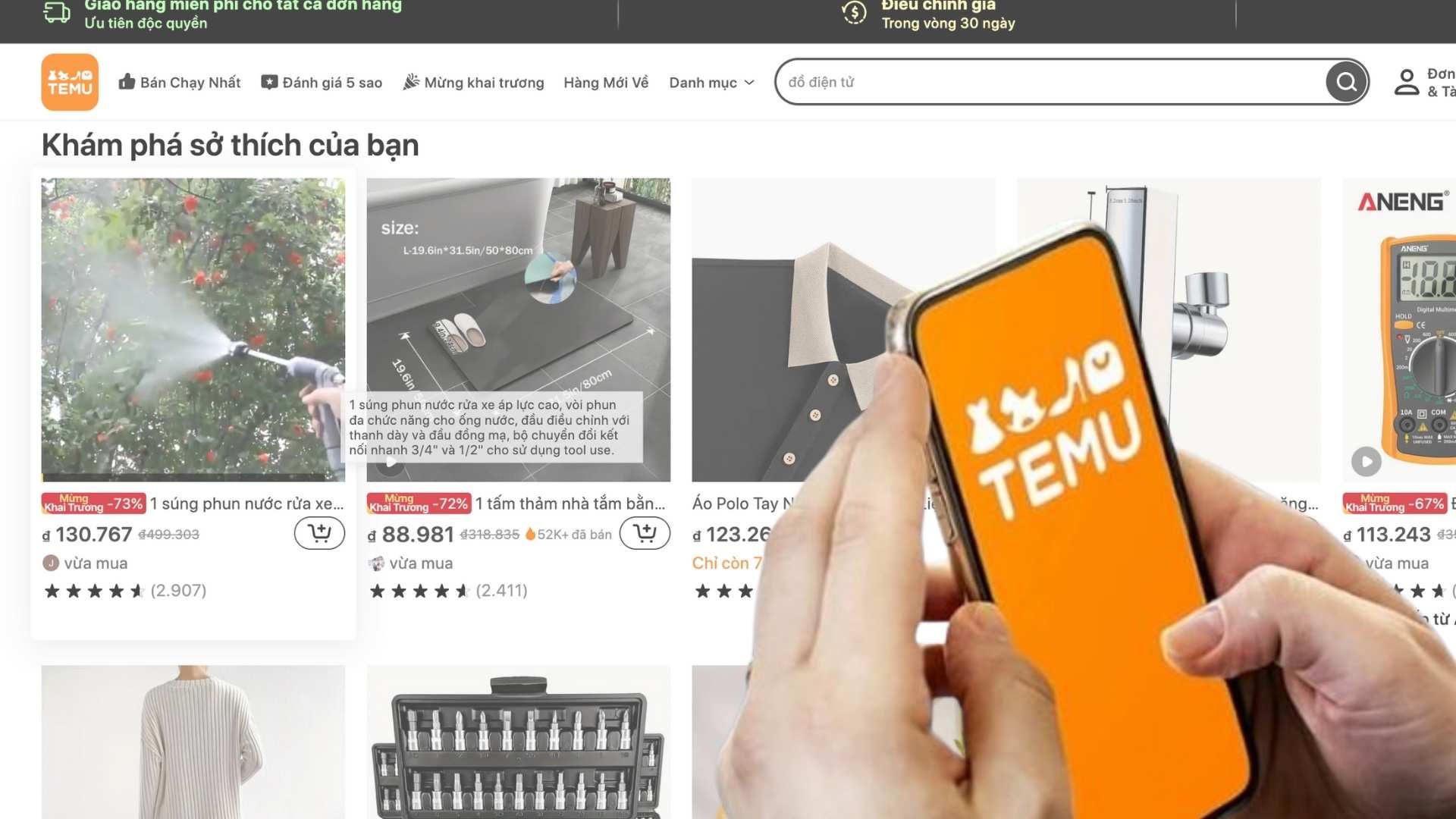 Trên trang web Temu, giá các sản phẩm hiển thị bằng đồng Việt Nam, kèm theo đánh giá từ khách hàng. Quá trình giao hàng tới Việt Nam cũng rất nhanh chóng, chỉ từ 4 đến 7 ngày, và Temu miễn phí vận chuyển cho tất cả đơn hàng.