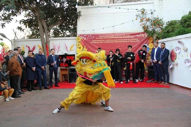 Nhân dịp này, Đại sứ quán đã giới thiệu các món ăn, âm nhạc truyền thống và các màn biểu diễn võ thuật và múa lân đặc sắc do các võ sinh Vovinam, võ cổ truyền, Thanh Long võ đạo người Algeria thực hiện.