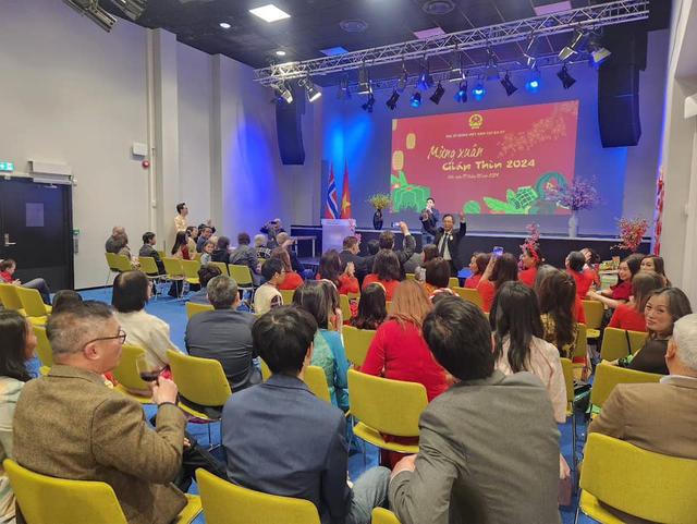 Tại chương trình ở trung tâm thủ đô Oslo - Na Uy tối 3-2, các đại biểu cùng nhau lắng nghe các giai điệu quê hương, gửi tặng nhau những bài thơ chúc Tết, xem một số phóng sự về sự phát triển của đất nước và chính sách đối với kiều bào và người Việt Nam ở nước ngoài; cùng với đó là thưởng thức bánh chưng xanh và các món ăn truyền thống đậm đà hương vị quê hương cũng như tham gia phần chơi vui về hỏi đáp.
