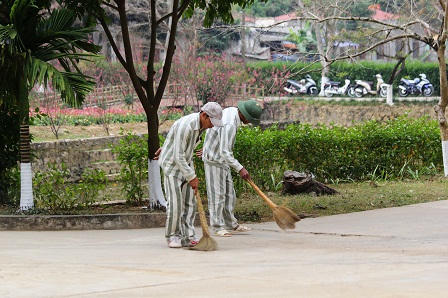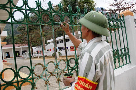 Những tốp phạm nhân khu I – B12 đang sơn sửa quét vôi mới, trắng rạng rỡ khu vực tiếp đón người nhà, trong và ngoài buồng giam được tổng vệ sinh sạch sẽ; băng rôn chúc mừng năm mới cùng hình ảnh hoa đào sắc thắm được treo tại cổng chính Trại tạm giam tạo cảm giác ấm áp trong mùa đông lạnh giá.
