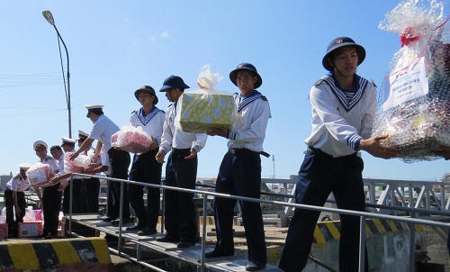 Năm nào cũng vậy, ngoài tiêu chuẩn tết theo quy định của Bộ Quốc phòng, quân và dân Trường Sa, Nhà giàn DK1 còn đón nhận nhiều phần quà xuân của các doanh nghiệp, cơ quan, tỉnh, thành gửi tặng, chủ yếu là nhu yếu phẩm và đồ dùng sinh hoạt ngày tết...