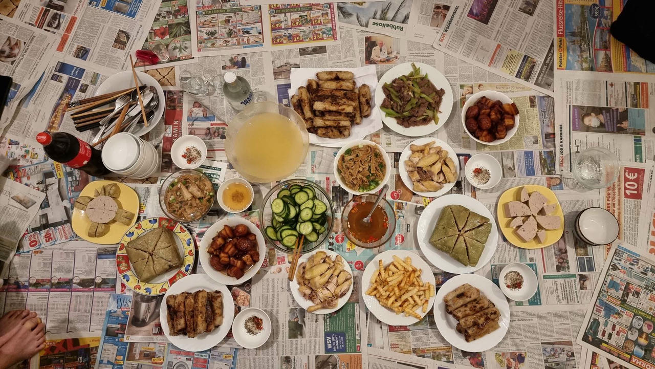 Mâm cơm ngày Tết của các điều dưỡng viên ở Đức. |