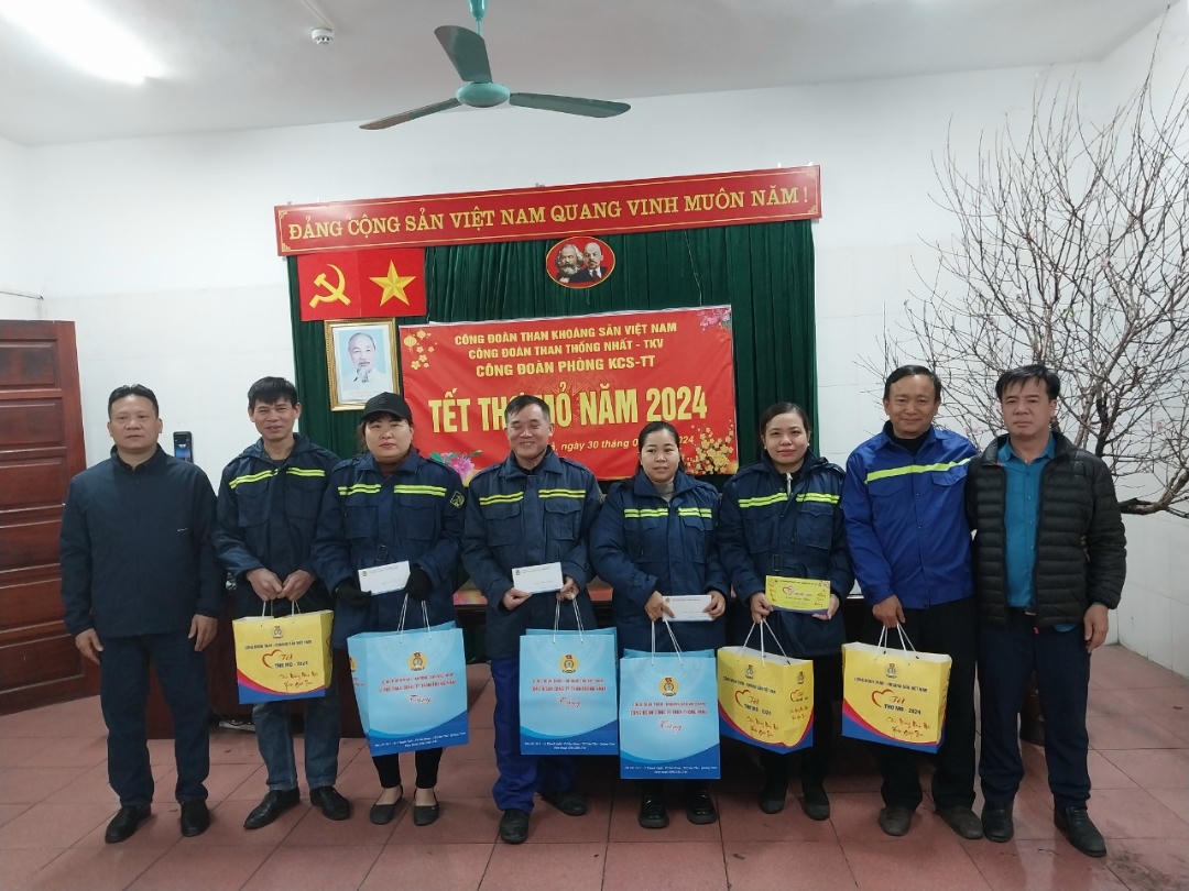 Đồng chí Đào Tuấn Anh, Phó Giám đốc Công ty cho biết: Năm nay, thợ mỏ Than Thống Nhất ăn Tết “to” hơn năm ngoái với các khoản bình quân trong dịp Tết là 45 triệu đồng/người, trong đó tiền Tết là 8 triệu đồng/người, tăng 2 triệu so với Tết Quý Mão. Cũng đã thành nét đẹp truyền thống, lãnh đạo Công ty tổ chức các đoàn đi thăm, tặng quà, chúc Tết các gia đình CNLĐ xuất sắc, gia đình chính sách, khó khăn, trao nhà “Mái ấm Công đoàn”… để mọi gia đình đều đón Tết đầm ấm, vui tươi.