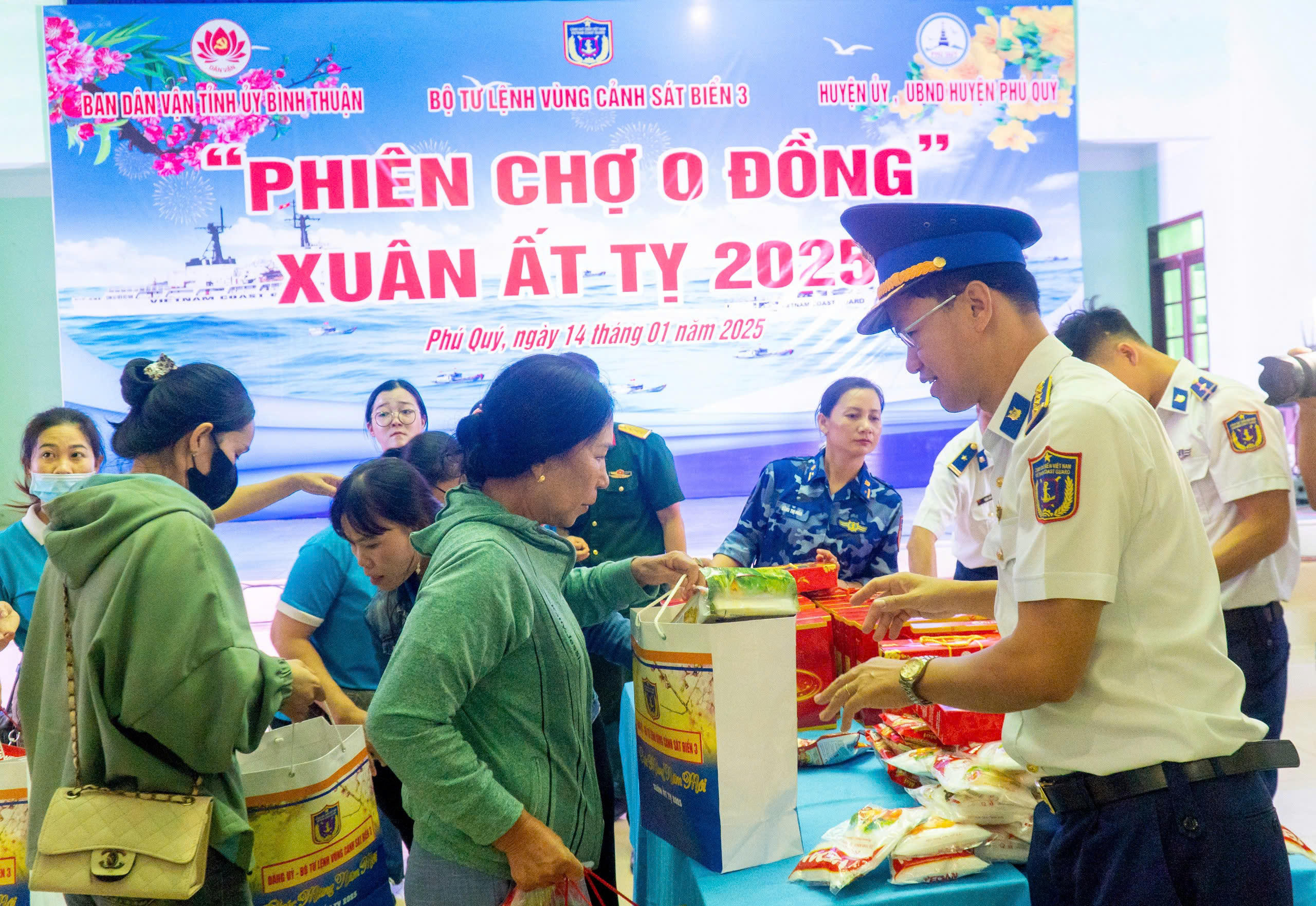 Cùng thời gian trên, sự kiện “Phiên chợ Tết 0 đồng” cũng được Đoàn công tác tổ chức nhằm hỗ trợ ngư dân và các gia đình chính sách có hoàn cảnh khó khăn. 100 phiếu mua hàng miễn phí đã được trao tặng, giúp người dân có thể mua sắm các nhu yếu phẩm để đón Tết Nguyên đán ấm cúng hơn. Những phần quà này không chỉ mang ý nghĩa vật chất mà còn thể hiện sự quan tâm, chia sẻ từ lực lượng quân đội và chính quyền với các hộ có hoàn cảnh khó khăn nơi đảo xa.