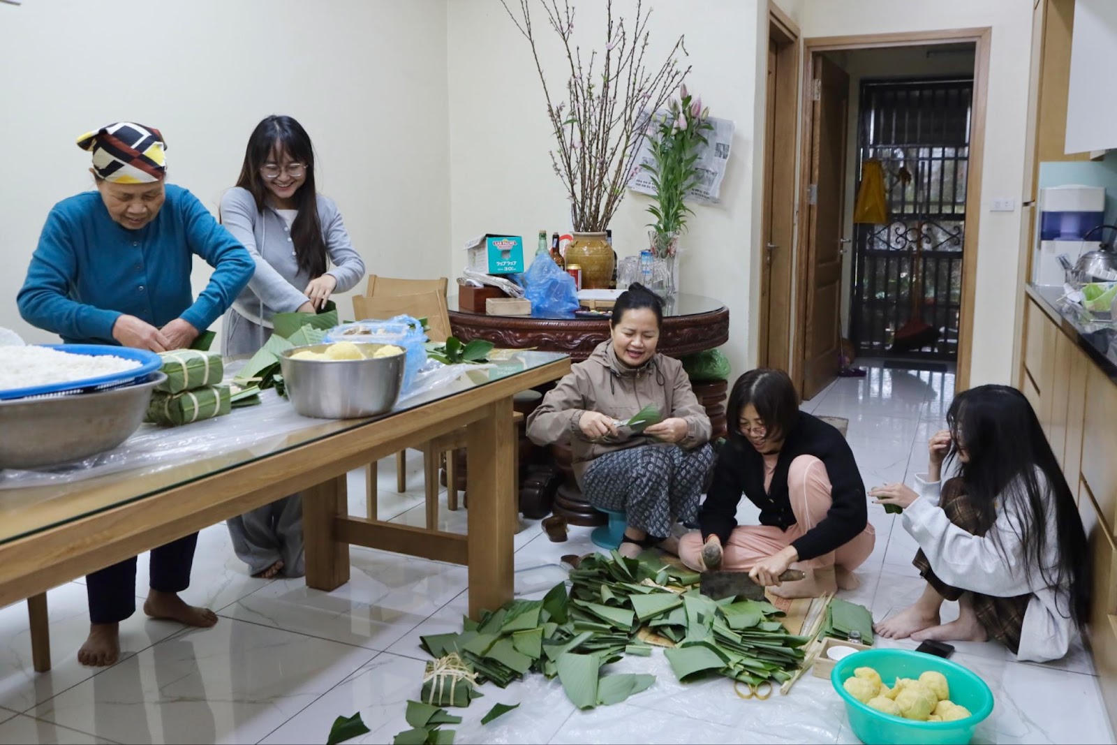 Mỗi năm, dù bận bịu nhưng nhiều bạn trẻ vẫn cố gắng thu xếp công việc để về quê kịp gói bánh, dọn dẹp, sắm sửa cùng ông bà cha mẹ vào những ngày cận Tết. Tú Uyên (25 tuổi) chia sẻ: “Năm nào gia đình mình cũng tụ họp đầy đủ vào ngày 27 Tết tại nhà ông bà để gói bánh Chưng. Mỗi người một việc, người lau lá dong, người đong gạo, vừa làm vừa lắng nghe bà kể chuyện Tết xưa. Đó là khoảnh khắc giúp cả nhà thêm gắn kết và hiểu nhau hơn.”