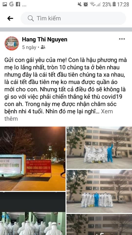 Mạng xã hội mới đây chia sẻ bức thư dặn dò con gái của nữ bác sĩ đang làm nhiệm vụ trong bệnh viện dã chiến ở Hải Dương: “Gửi con gái yêu của mẹ! Con là hậu phương mà mẹ lo lắng nhất, tròn 10 chúng ta ở bên nhau nhưng đây là cái tết đầu tiên chúng ta xa nhau, là cái tết đầu tiên mẹ ko mua được quần áo mới cho con. Nhưng tất cả điều đó sẽ không là gì so với việc phải chiến thắng kẻ thù covid19 con ah. Trong này mẹ được nhận chăm sóc bệnh nhi 4 tuổi. Nhìn đó mẹ lại nghĩ về con mà lo lắng không ngủ được, hy vọng ở quê cùng ông bà nội, ngoại con sẽ được an toàn, những người thân sẽ thay mẹ bảo vệ con bằng chiếc áo giáp sắt được làm từ khẩu trang đeo trên mặt, rửa tay thường xuyên bằng cồn, hạn chế tiếp xúc với người khác giữ đúng khoảng cách xa 2m khi nói chuyện, còn mẹ tin chắc chắn rằng con luôn có những bữa ăn ngon rồi! Hãy là hậu phương vững chắc để mẹ yên tâm chiến đấu bao giờ hết giặc mẹ sẽ về với con yêu con nhiều lắm!!!”.