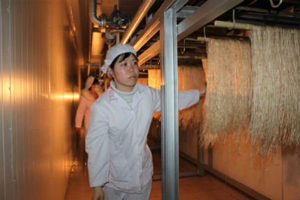 “Hiện đây là dây chuyền duy nhất tại miền Bắc nhập khẩu đồng bộ và có cải tiến về công nghệ, thiết bị cho phù hợp với nguồn gốc tinh bột miến dong nên có thể khẳng định chất lượng sẽ ngon nhất và đảm bảo vệ sinh nhất” – Bà Chu Hương Giang, Phó Tổng giám đốc phụ trách kỹ thuật của công ty khẳng định.