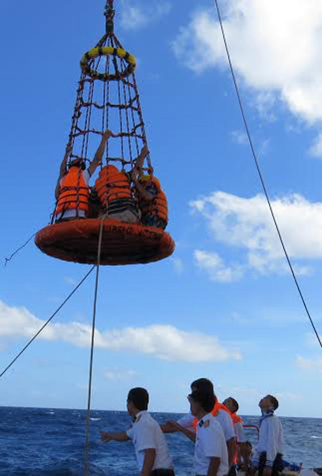 Khi đến được dưới chân các nhà giàn, bởi sóng to gió lớn nên đoàn công tác không thể lên nhà giàn bằng thang cố định như thường lệ mà phải dùng dây và ròng rọc và kéo từng người, từng thùng hàng lên phía trên để gặp gỡ, giao lưu, chúc Tết và trao quà cho cán bộ chiến sĩ.