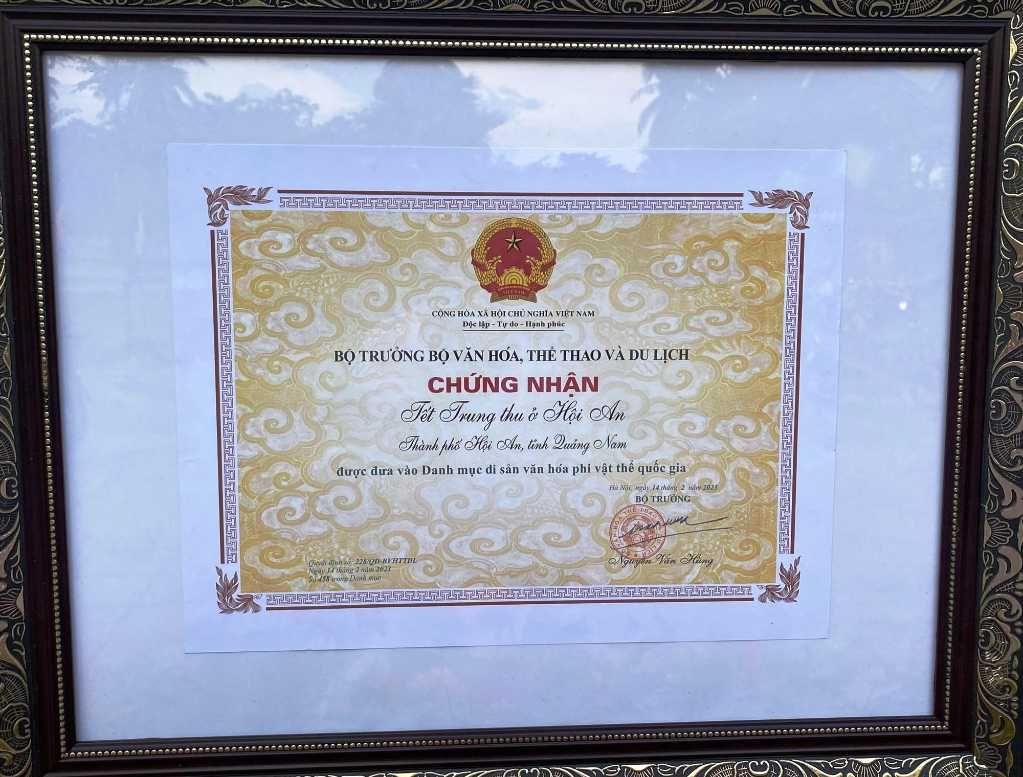 Với những giá trị đặc trưng đó, ngày 14/2/2023, Bộ VH-TT&DL đã ban hành Quyết định số 228 về việc công bố Danh mục di sản văn hóa phi vật thể quốc gia “Lễ hội truyền thống, tập quán xã hội và tín ngưỡng Tết Trung thu ở Hội An, Quảng Nam”.