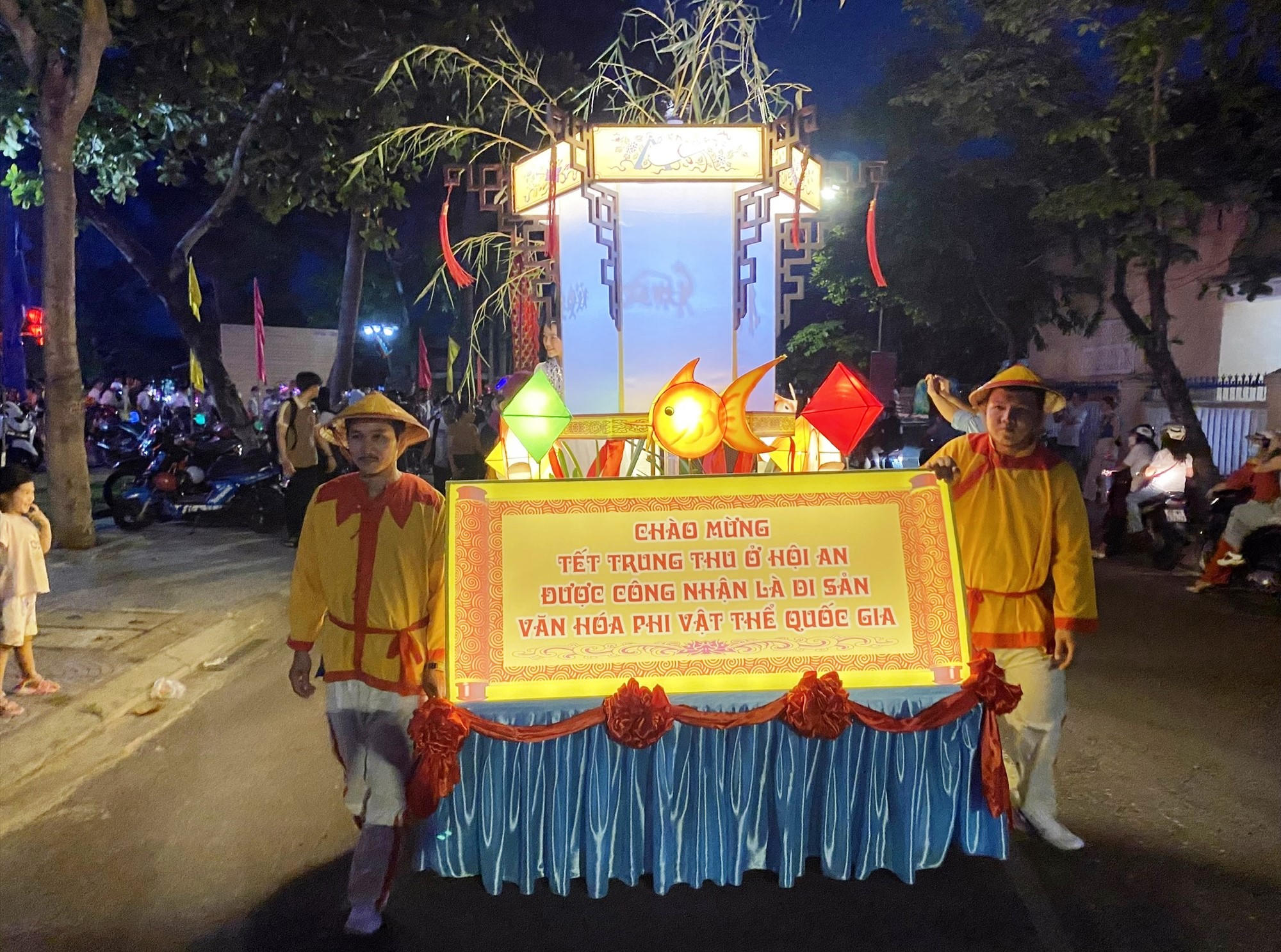 Trước khi diễn ra lễ đón nhận danh hiệu, chiều cùng ngày, đoàn rước danh hiệu di sản văn hóa phi vật thể quốc gia Tết Trung thu đã tổ chức diễu hành chào mừng trên các tuyến đường trong khu phố cổ Hội An.