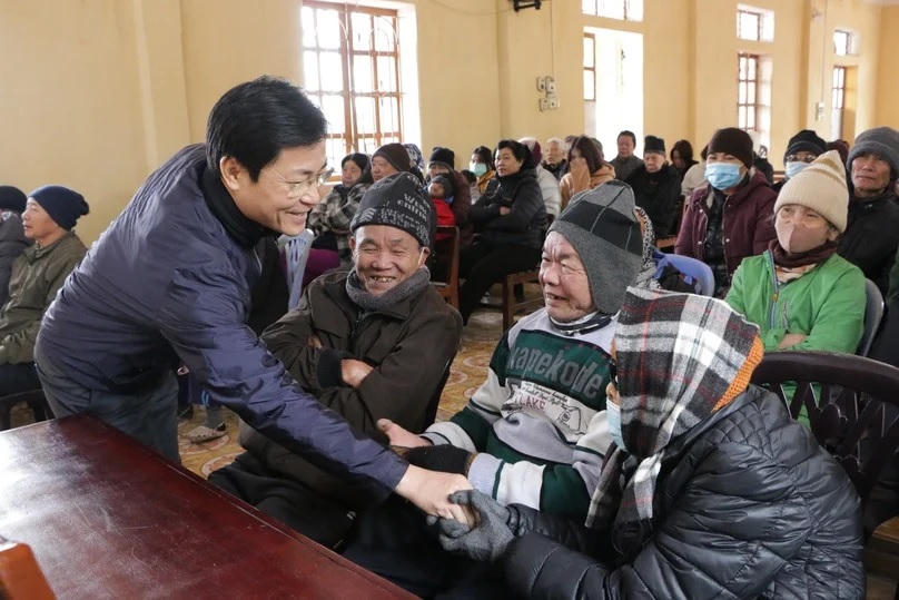 Phó Giám đốc Bệnh viện Da liễu Trung ương Nguyễn Văn Thành thăm hỏi và tặng quà cho 96 người bệnh sống ở Khu điều trị phong Chí Linh, Hải Dương. |