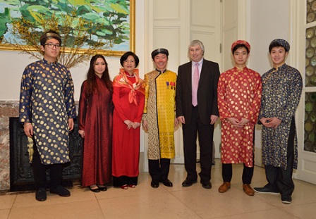 500 khách mời gồm bà con Việt Kiều tại Vương quốc Bỉ cùng các bạn bè quốc tế tới tham dự tiệc đón xuân Giáp Ngọ tại Đại sứ quán Việt Nam ở Brusel.