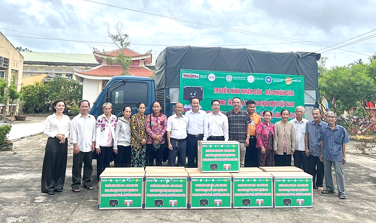 Đại diện Trung tâm phát triển dự án nông thôn mới Việt Nam – Chi nhánh Công ty TNHH Nanomic trao máy lọc nước cho một số địa phương. |