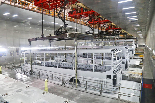 Nhà máy Bus Thaco có công suất 20.000 xe/năm là nhà máy xe khách lớn nhất Đông Nam Á với định vị Công nghệ hiện đại và thân thiện môi trường. Tại đây, Thaco đã nghiên cứu thiết kế và sản xuất các sản phẩm xe bus với đầy đủ các chủng loại xe từ trung cao cấp đến cao cấp và theo mục đích sử dụng, có kiểu dáng và nhận diện hoàn toàn mới, sử dụng động cơ khí thải tiêu chuẩn Euro 4,5,6, bổ sung thêm dòng sản phẩm xe bus mang thương hiệu Thaco – Việt Nam, chất lượng quốc tế và đạt tỷ lệ nội địa hóa cao (60%), đáp ứng điều kiện xuất khẩu sang các nước ASEAN.