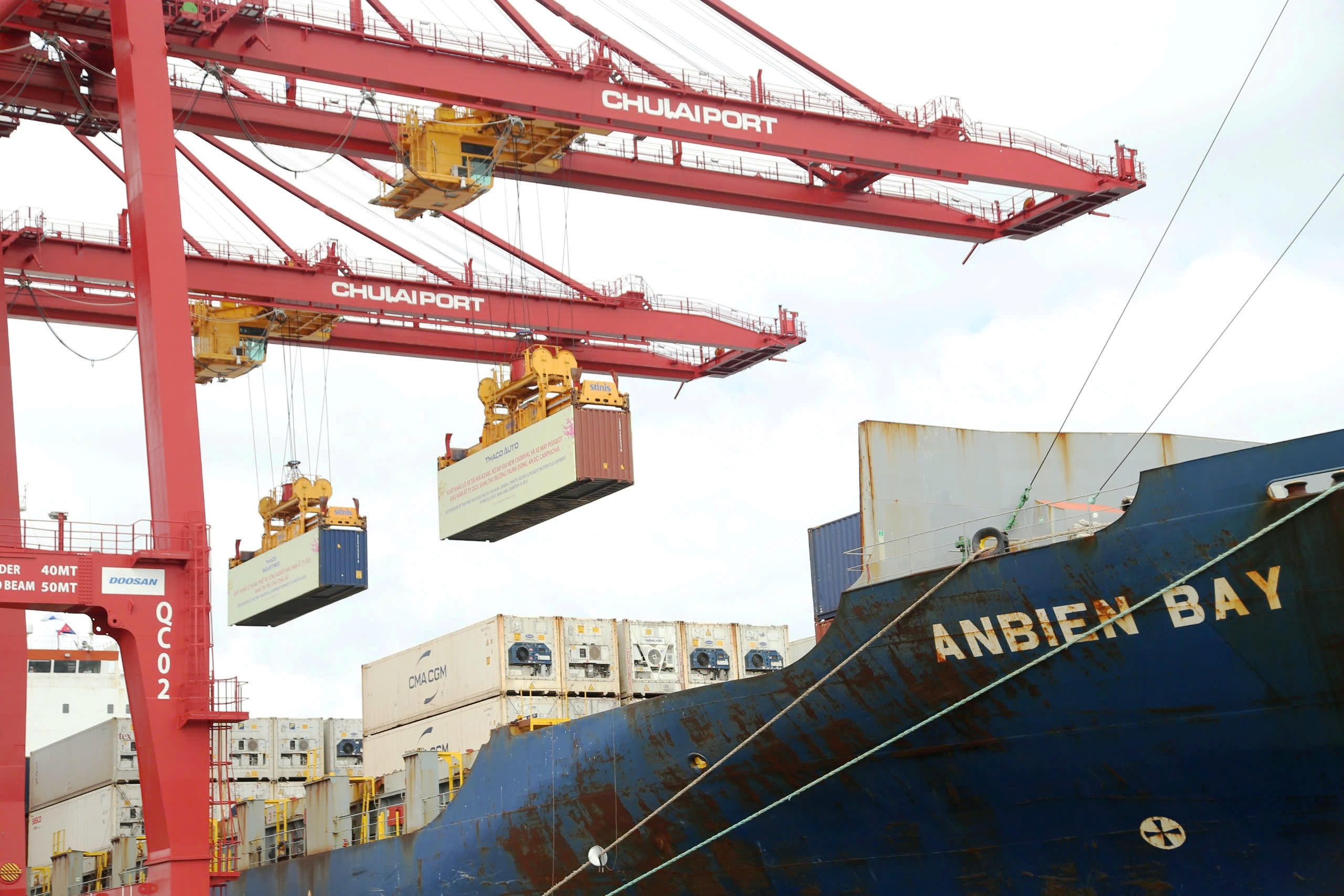 Hơn 300 container hàng hóa của các tập đoàn thành viên thuộc THACO được xuất khẩu qua cảng Chu Lai. (Ảnh: Anh Huy). |