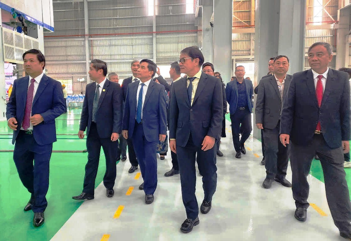 Lãnh đạo tỉnh Quảng Nam và Tập đoàn THACO Trường Hải tham quan các nhà máy. (Ảnh: Anh Huy). |