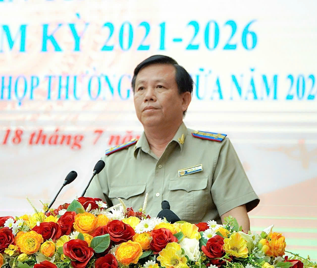 Ông Nguyễn Văn Vũ - Cục trưởng Cục Thi hành án dân sự (THADS) tỉnh Kiên Giang trả lời chất vấn. |