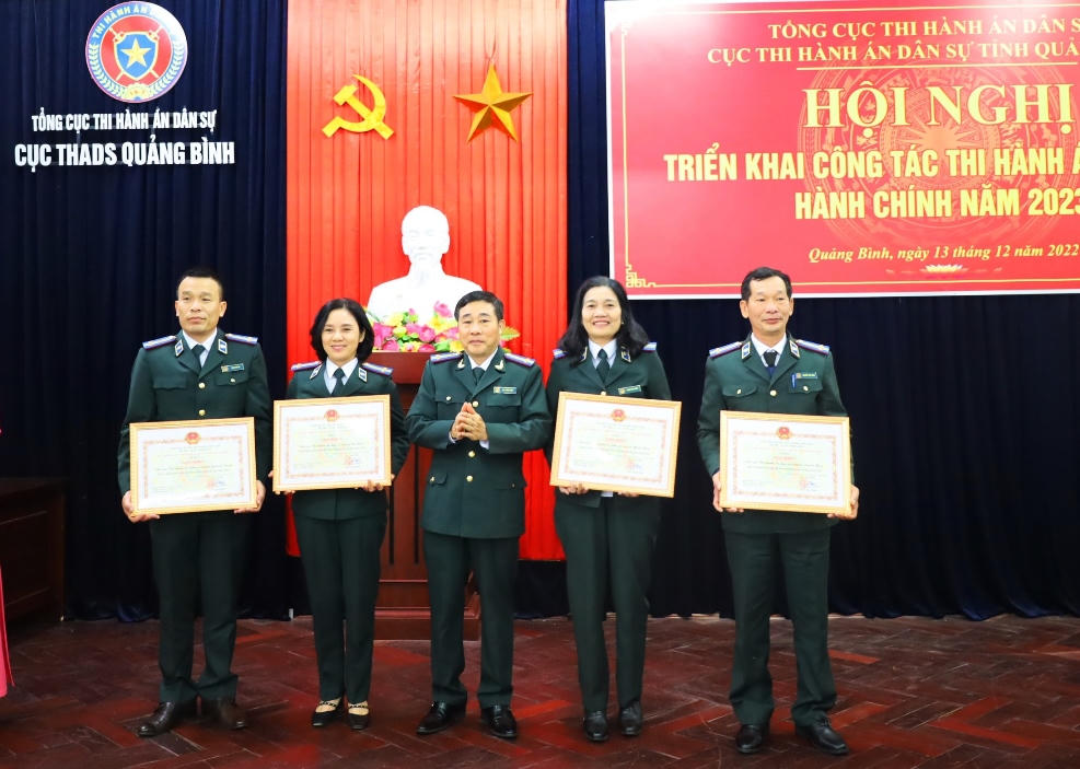 Trao giấy khen của Cục trưởng Cục THADS tỉnh Quảng Bình cho 4 tập thể và 15 cá nhân có thành tích công tác xuất sắc. |