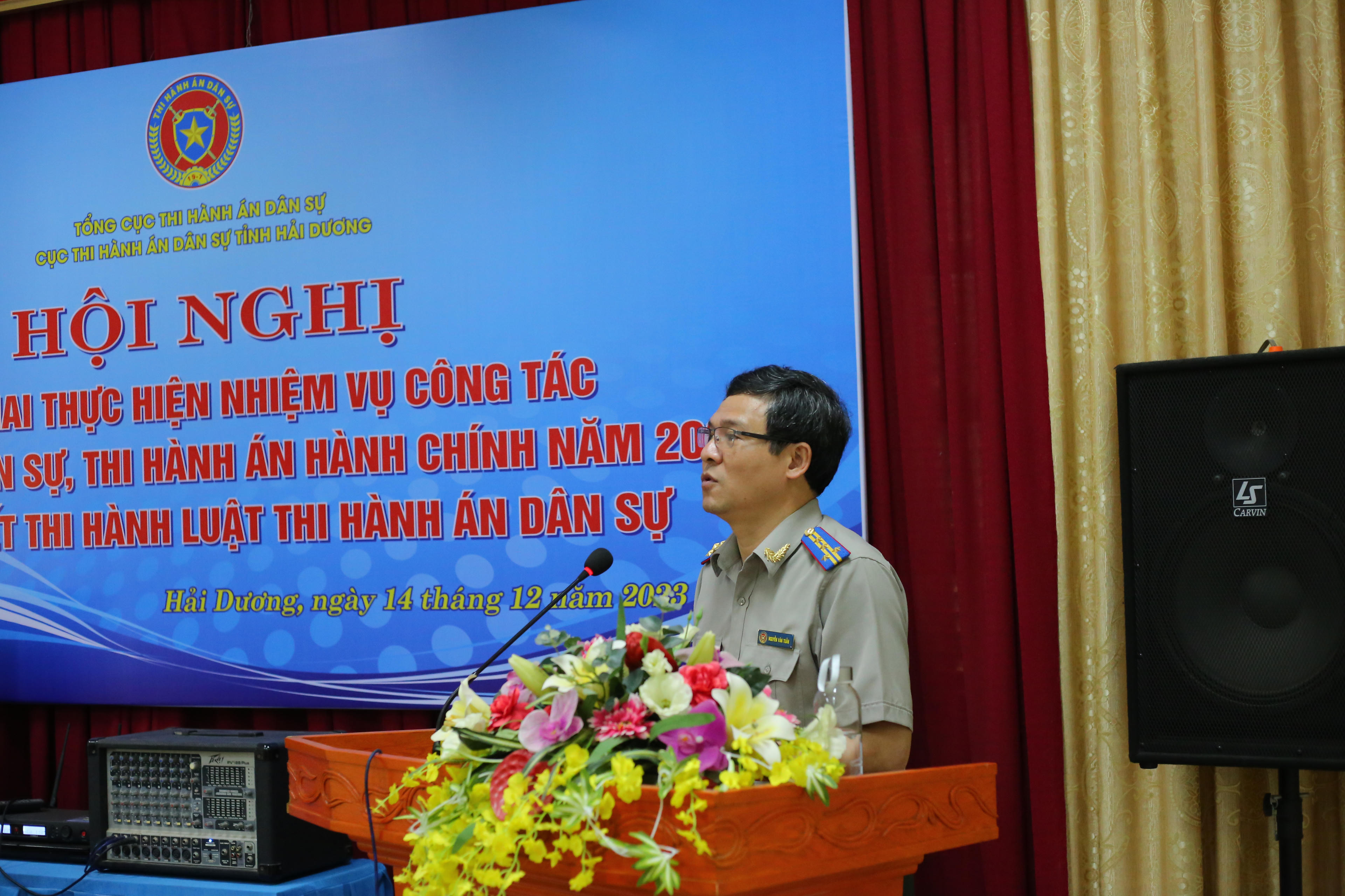 Bên cạnh những mặt đạt được, báo cáo Cục THADS tỉnh Hải Dương cũng thẳng thắn chỉ ra một số tồn tại, hạn chế cần phải khắc phục trong thời gian tới. Cụ thể, còn 3 Chi cục chưa đạt tỷ lệ thi hành về tiền theo chỉ tiêu được giao. Bên cạnh đó, việc chỉ đạo và tổ chức thi hành một số vụ việc thi hành khó khăn, phức tạp, vụ việc có khiếu nại, tố cáo, vụ việc liên quan đến xử lý tài sản kê biên, vụ việc liên quan đến tín dụng ngân hàng còn chậm và chưa thực sự quyết liệt; kết quả thi hành án liên quan đến tín dụng, ngân hàng đạt tỷ lệ thấp; việc chấp hành kỷ luật, kỷ cương, nội quy, quy chế cơ quan, lề lối, tác phong của một bộ phận công chức và người lao động chưa được nghiêm túc...