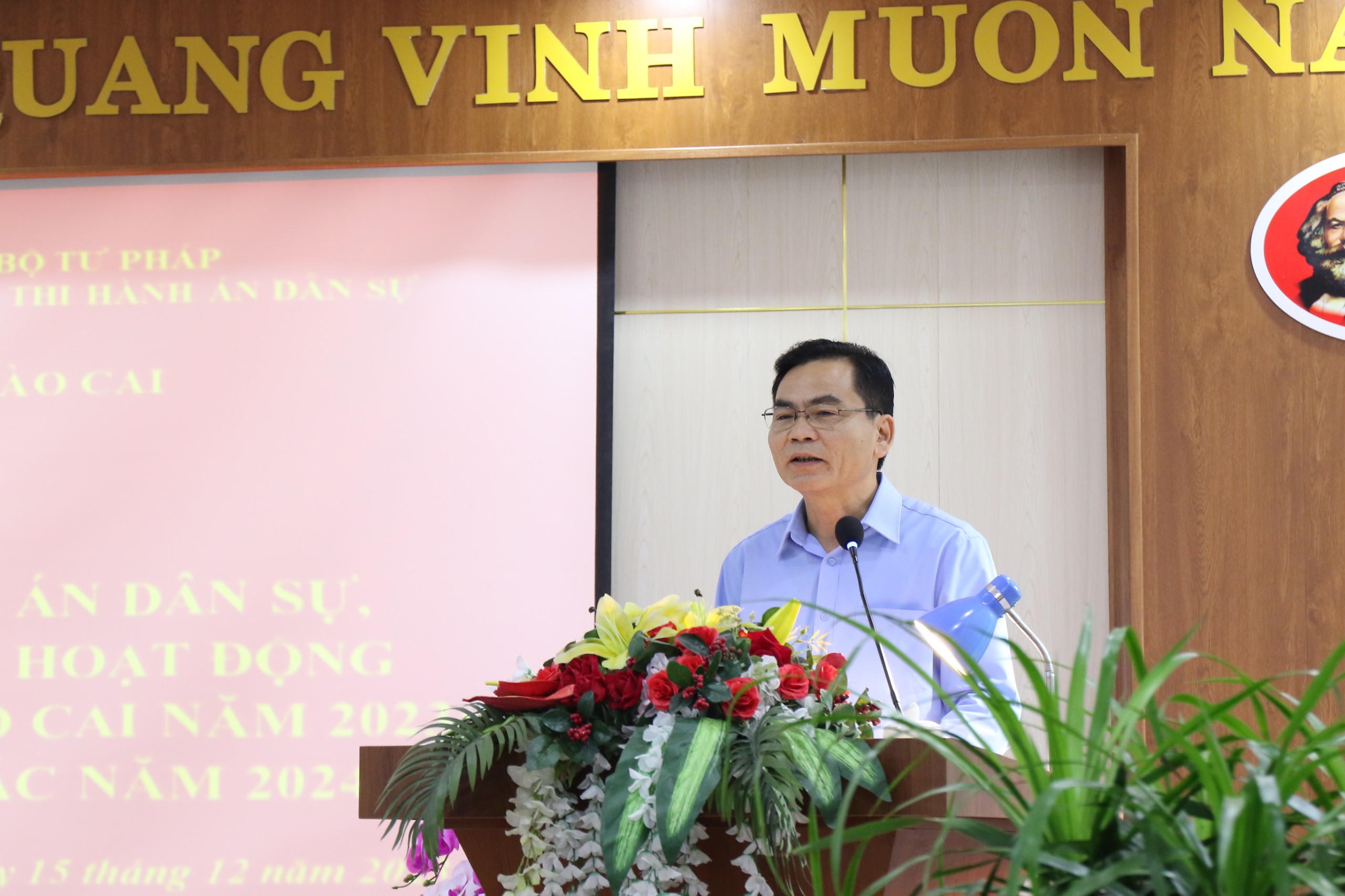 Phó Chủ tịch UBND tỉnh Lào Cai đề nghị Cục THADS tỉnh cần tham mưu tích cực hơn nữa cho UBND tỉnh trong công tác THADS, theo dõi thi hành án hành chính; kịp thời báo cáo Ban Chỉ đạo Thi hành án dân sự tỉnh kết quả giải quyết những vụ việc phức tạp, khó thi hành.