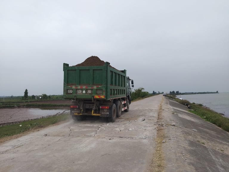 Như vậy, không những đê biển bị cày nát, đường làng, đường dân sinh, đường khu công nghiệp tại huyện Tiền Hải cũng bị ảnh hưởng nặng nề không kém, ngày mưa thì trơn trượt, ngày nắng thì khói bụi, tiếng ồn mịt mù.
