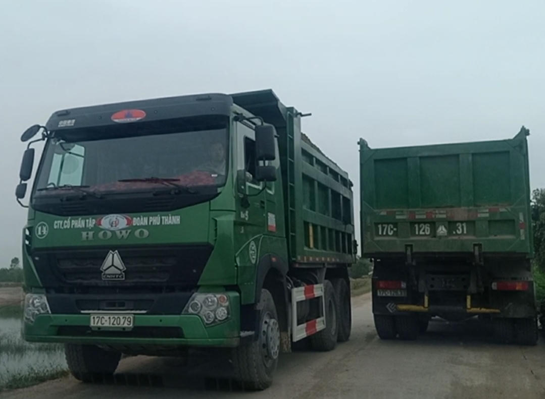 Theo chân đoàn xe quá khổ, quá tải của Công ty CP Tập đoàn Phú Thành từ bãi tập kết VLXD tạm ngoài đê xã Nam Hồng, PV ghi nhận hoạt động vận tải của nhà thầu này toả về hai hướng theo hình gọng kìm: Hướng thứ nhất từ ngã ba bến đò Bồng He đi về đường trục thôn, xã của các xã Nam Hồng - Nam Hải - Nam Hà - Tây Phong - Tây Tiến - Tây Giang (Cầu Cát Già) - Đông Lâm (KCN Tiền Hải); hướng thứ hai cũng từ ngã ba bến đò nói trên đi trên đê biển số 5 - Nam Hưng - Nam Trung.