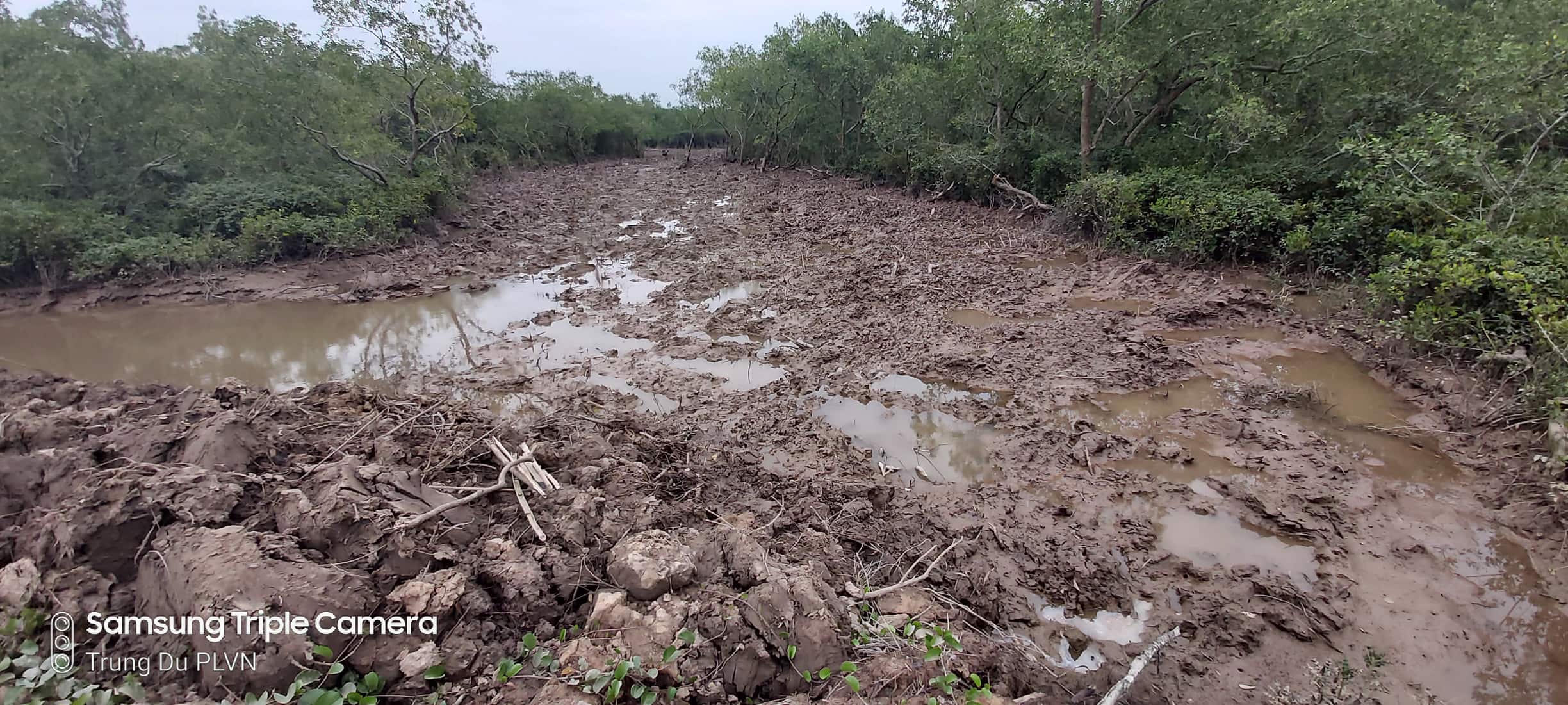 Các cây rừng trưởng thành lâu năm bao gồm bần, trang, sú... đã bị ông Bốn cho chặt hạ, chỉ còn trơ lại bùn đất.