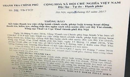 Không những thế, dư luận lại càng bức xúc và không thể hiểu Tập đoàn này “lớn mạnh” đến mức nào mà dám “chống” cả lệnh chỉ đạo của Thủ tướng Chính phủ. Cụ thể, theo thông báo số 396/TB – TTCP ngày 28/02/2017 của Thanh tra Chính phủ về kết luận thanh tra việc chấp hành chính sách, pháp luật trong hoạt động thanh tra, kiểm tra, chống thất thu ngân sách nhà nước đối với Bộ Tài chính, Tổng cục thuế và Cục thuế thành phố Hà Nội.