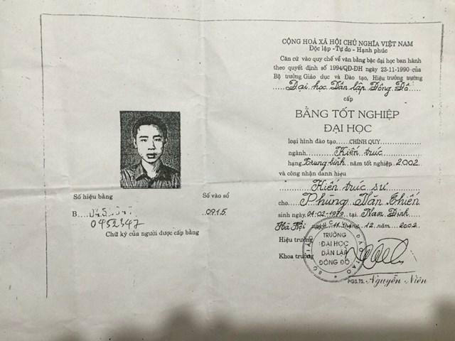 Theo đó, bằng tốt nghiệp đại học của của ông Chiến thuộc loại hình đào tạo chính quy và được công nhận danh hiệu Kiến trúc sư tại Đại học Dân lập Đông Đô (Hà Nội) vào năm 2002.