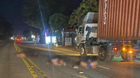 Thái Bình: Xe máy "kẹp 3" va chạm container, 1 người chết, 2 người bị thương nặng.
