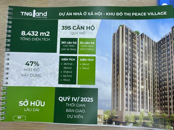 Đại diện chủ đầu tư, ông Nguyễn Mạnh Linh, Tổng giám đốc Công ty CP TNG LAND cho biết: “Dự án xây dựng tổng 395 căn NOXH trong đó có 34 căn liền kề 2 tầng, 1 toà nhà chung cư cao 18 tầng với 361 căn hộ”.