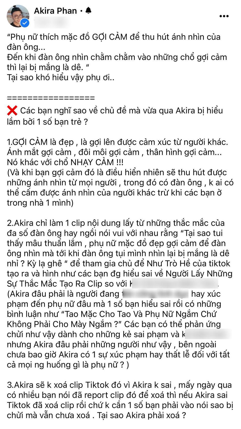 Akira Phan lên tiếng khi bị chỉ trích vì phát ngôn phụ nữ mặc gợi cảm